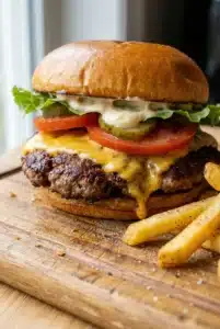 • Salad: A fresh side salad with a light vinaigrette balances the richness of the burger.