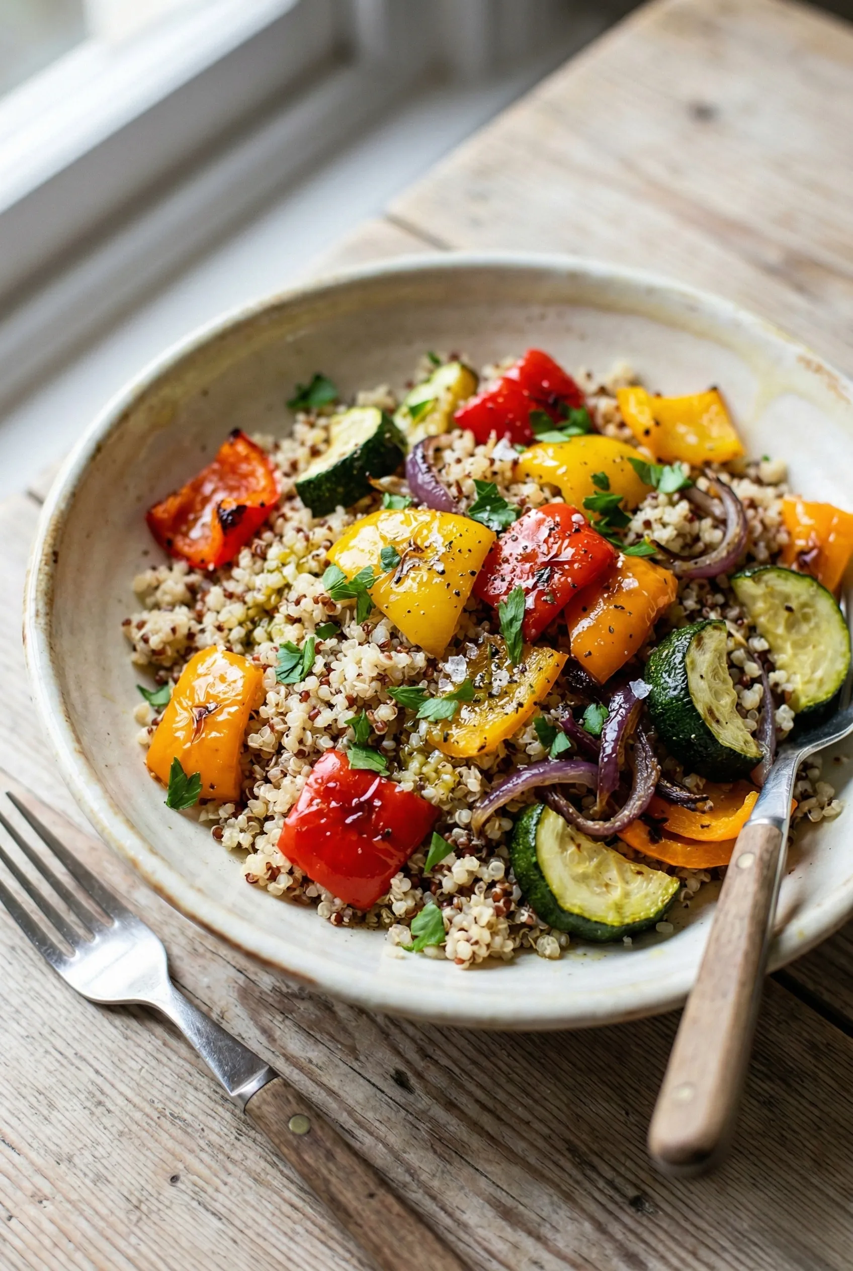 Whip up a delicious quinoa and roast veggie salad in just 30 minutes, perfect for a quick, healthy meal that’s full of flavor.
