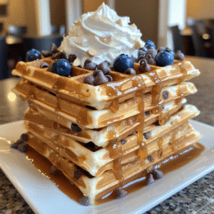 Enjoy cozy mornings at home with delightful blueberry waffles, made with fresh blueberries, fluffy batter, and a hint of vanilla for a perfect start.