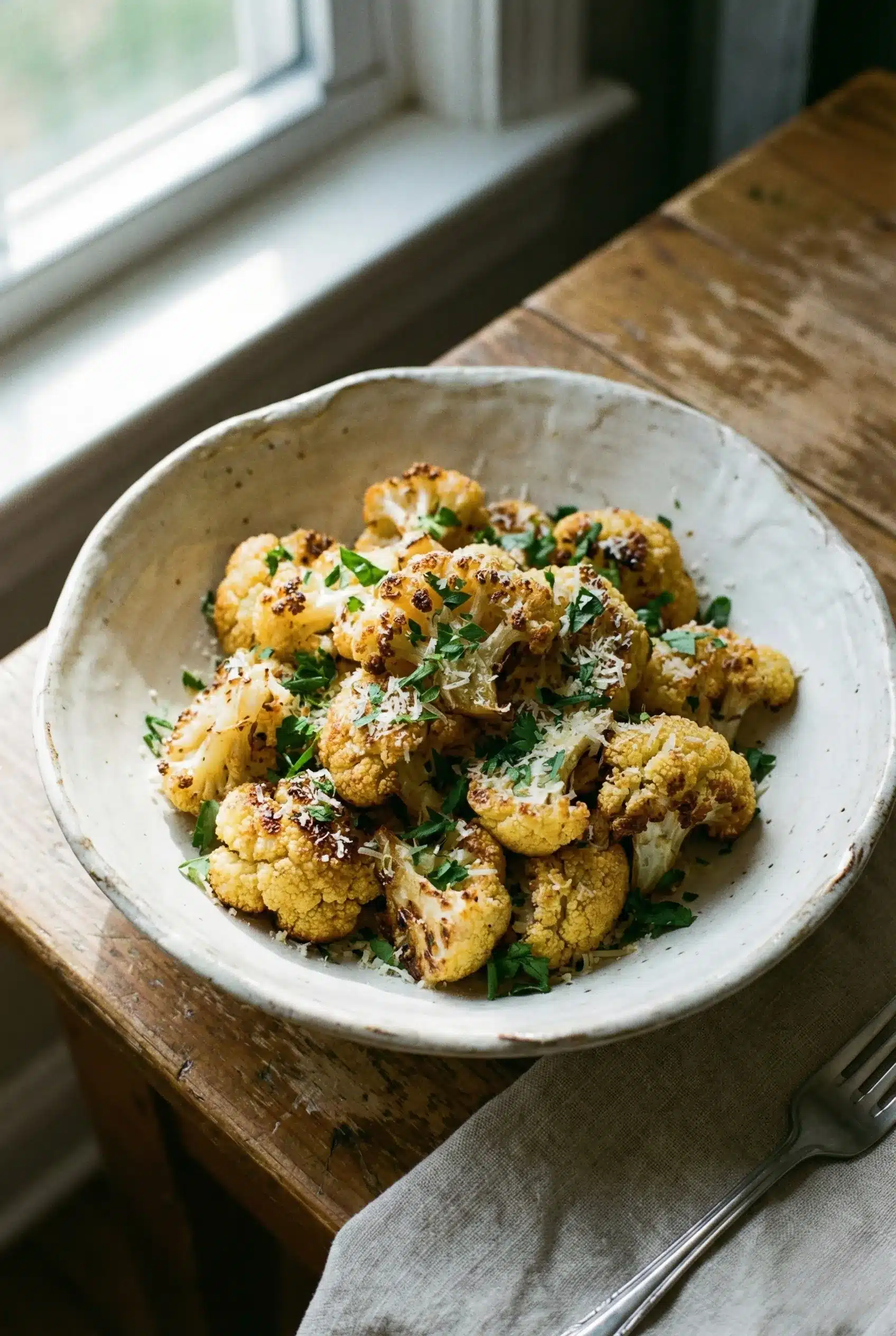 Discover the perfect blend of crispy air fryer cauliflower, seasoned with garlic, paprika, and Parmesan for a comforting, flavorful delight.