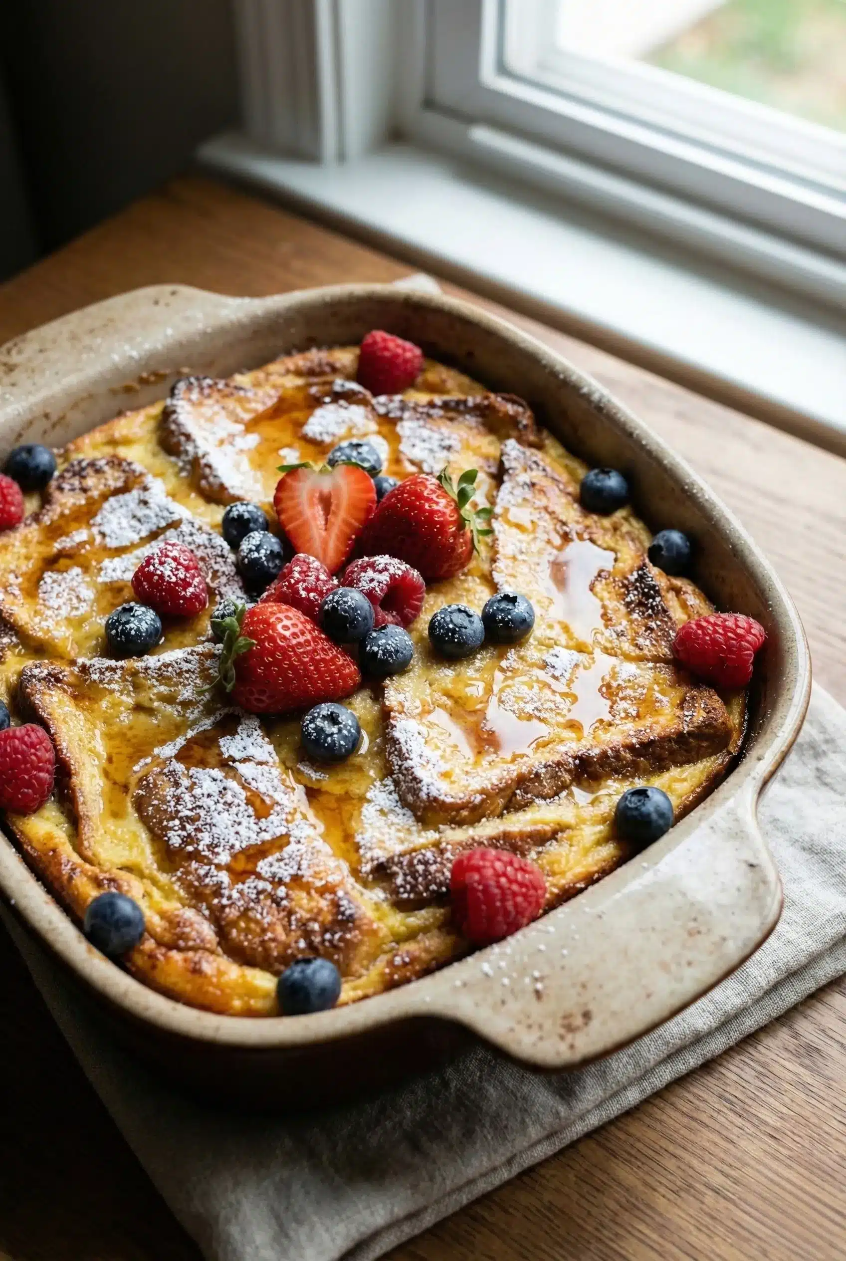 Savor layers of fluffy bread soaked in rich custard, baked to golden perfection. This baked French toast casserole is a delightful breakfast treat.