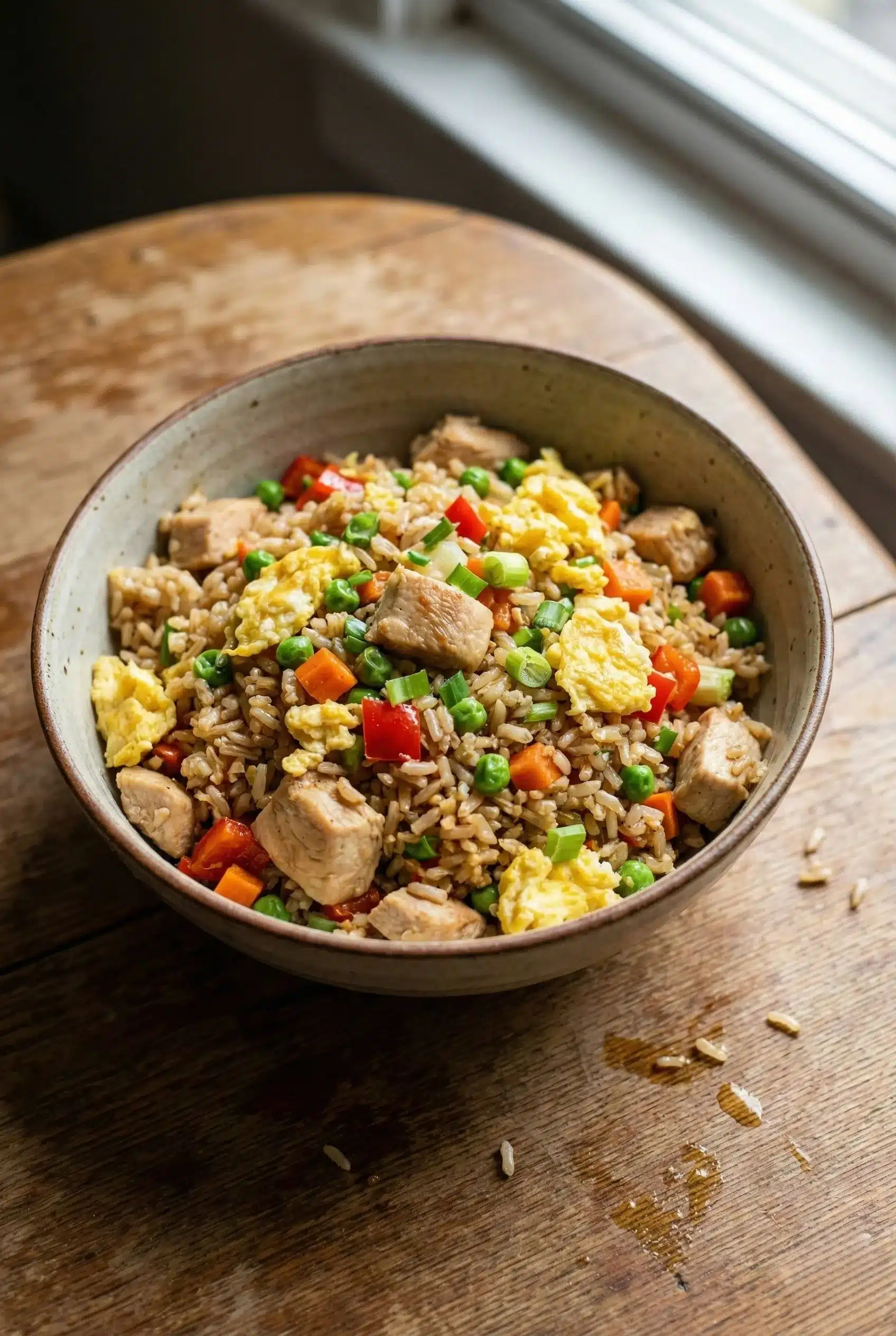 Discover a delicious high protein chicken egg fried rice recipe featuring tender chicken, eggs, and fresh veggies for a nutritious meal in no time.