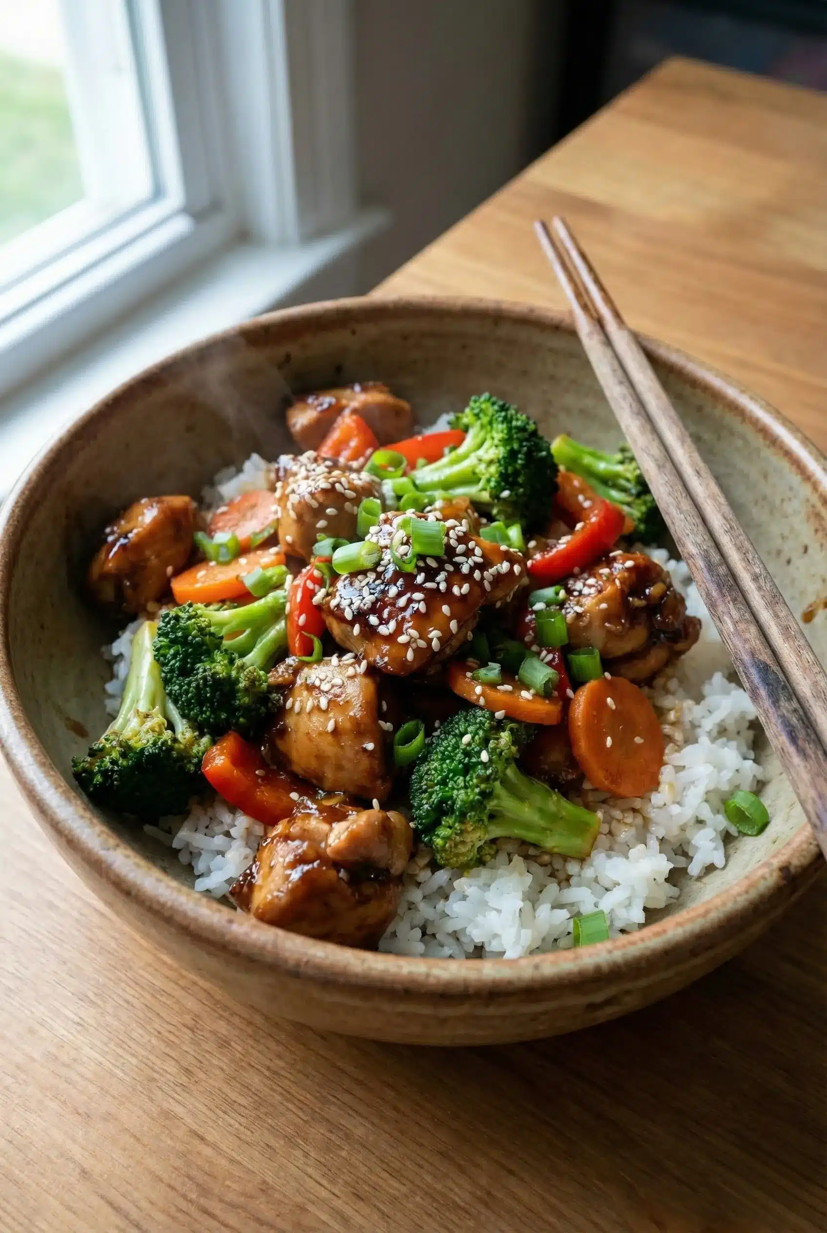 Create a delicious Chicken Teriyaki Bowl for a quick weeknight dinner, packed with vibrant veggies and rice for a balanced meal everyone will love.