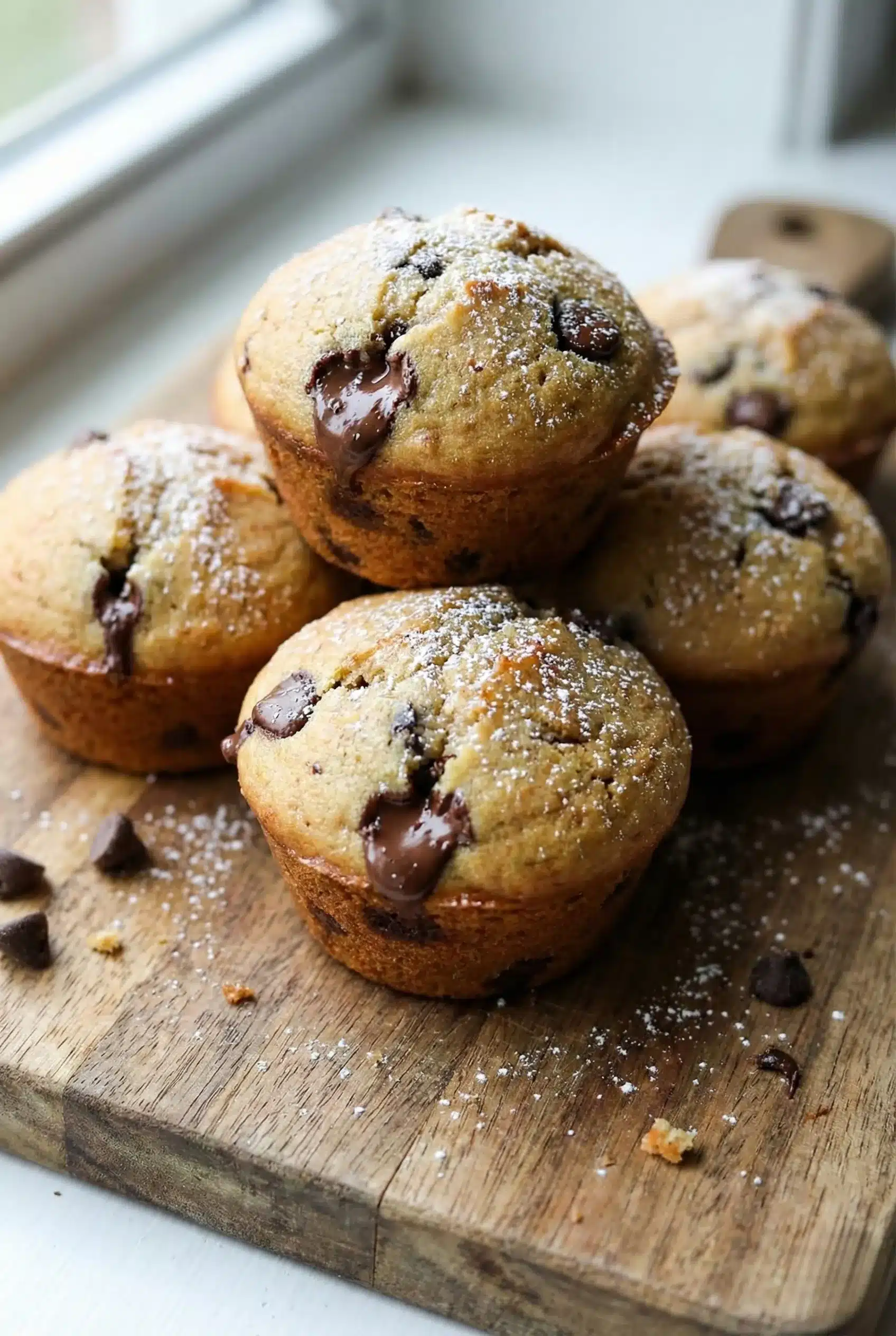 Indulge in warm, fluffy chocolate chip muffins that melt in your mouth, offering the perfect blend of sweetness and comfort in every bite.