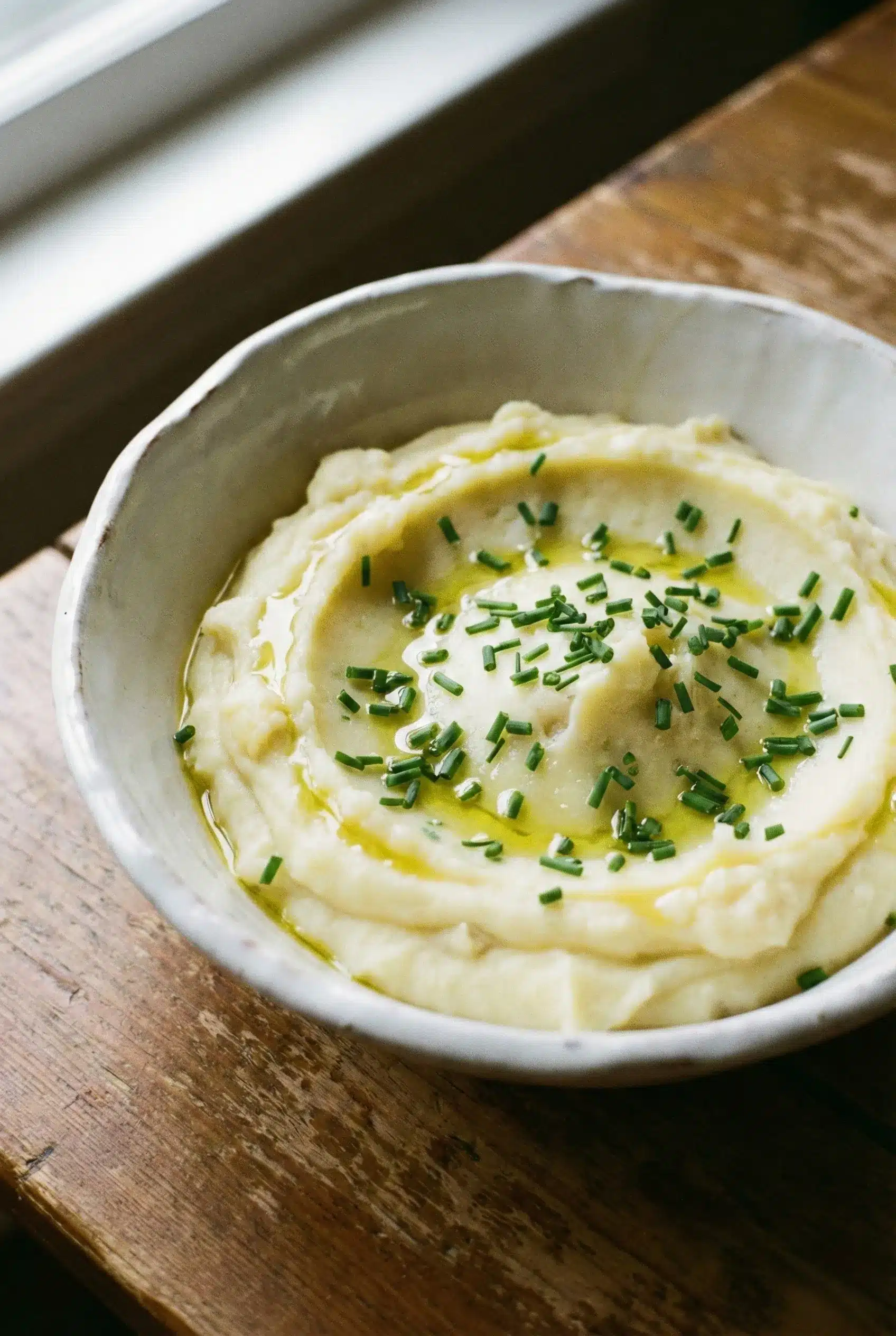 Indulge in creamy garlic mashed potatoes, blending rich flavors and velvety texture for the ultimate comfort food experience.