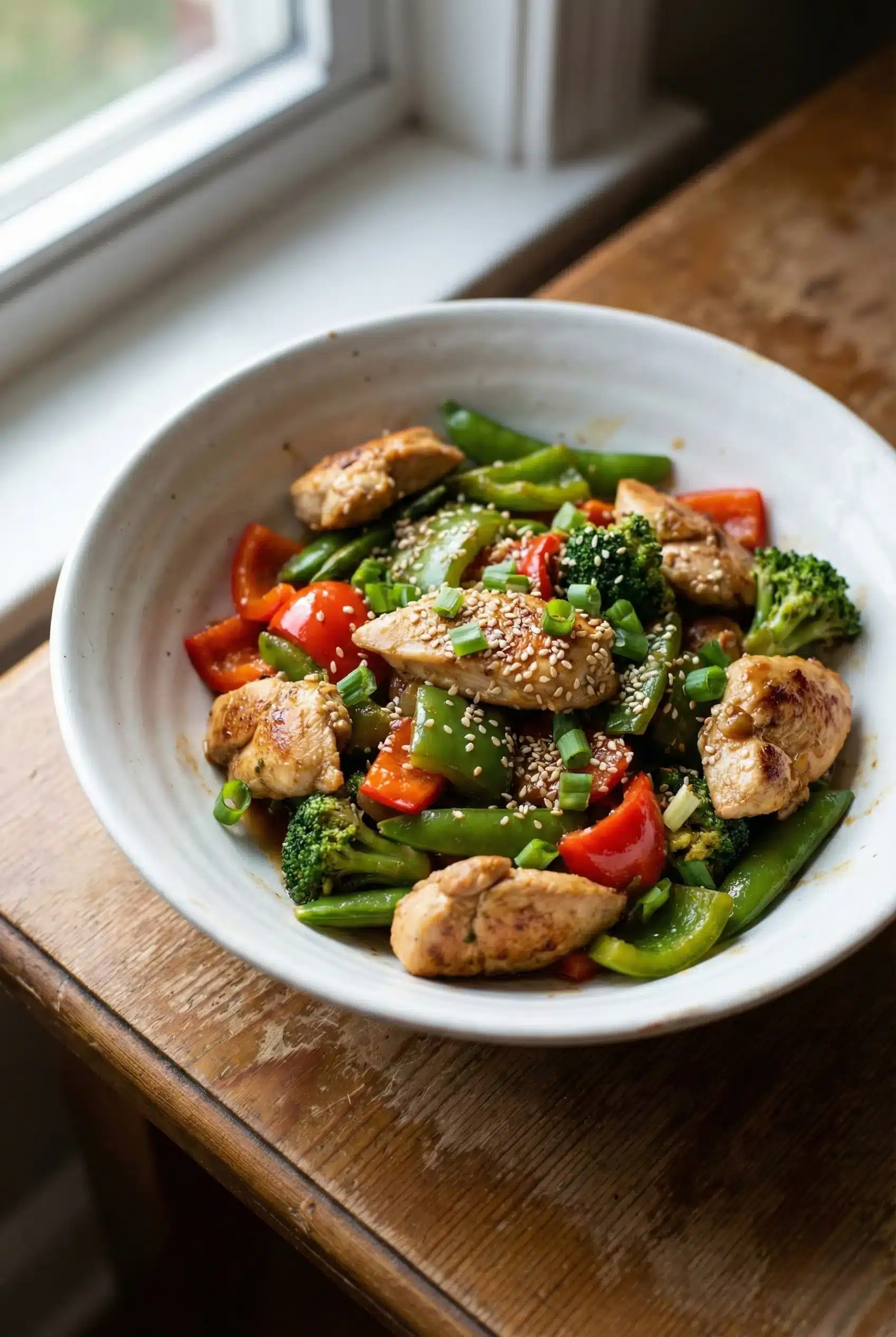 Whip up a quick and healthy chicken stir fry with fresh veggies, ginger, and soy sauce—perfect for busy weeknights and bursting with flavor.