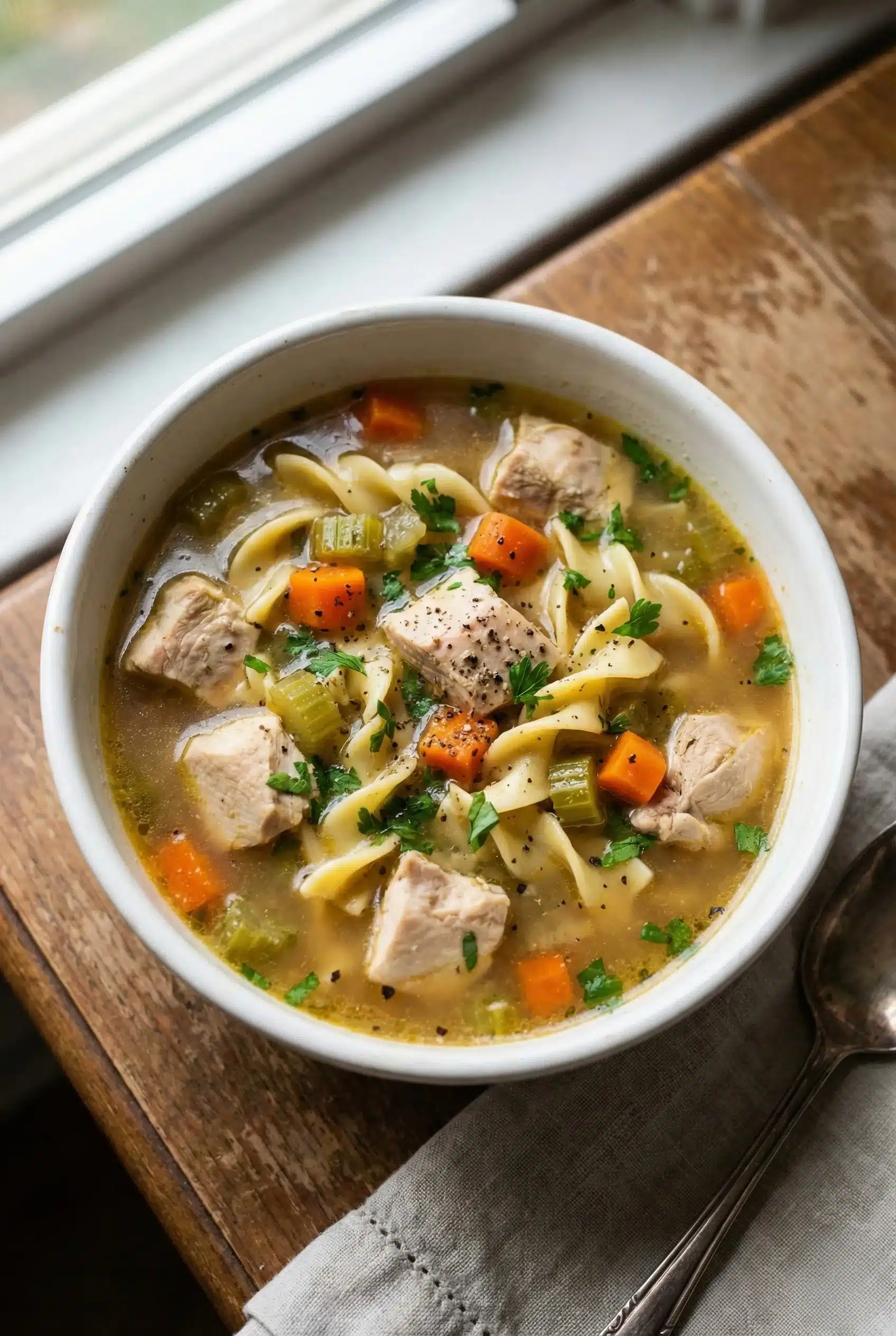 Whip up a classic chicken noodle soup in just 30 minutes with this simple recipe, perfect for a cozy meal any day of the week.
