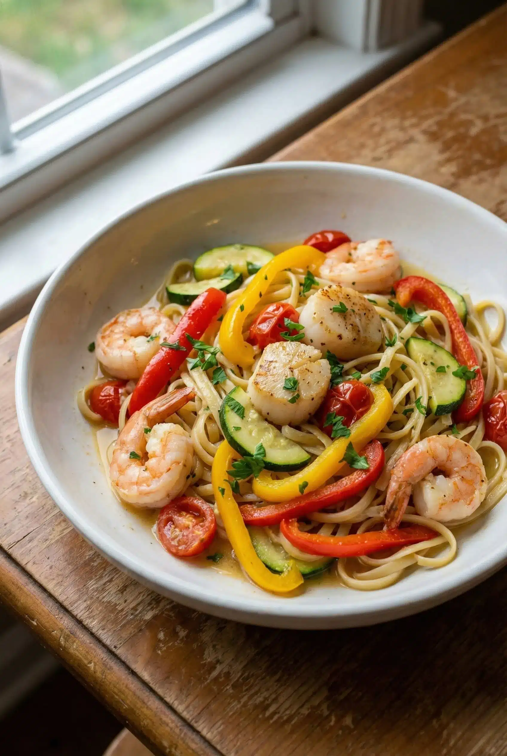 Prepare a quick and delightful Seafood Pasta Primavera that brings fresh flavors to your dinner table with minimal effort. Enjoy a light, satisfying meal!