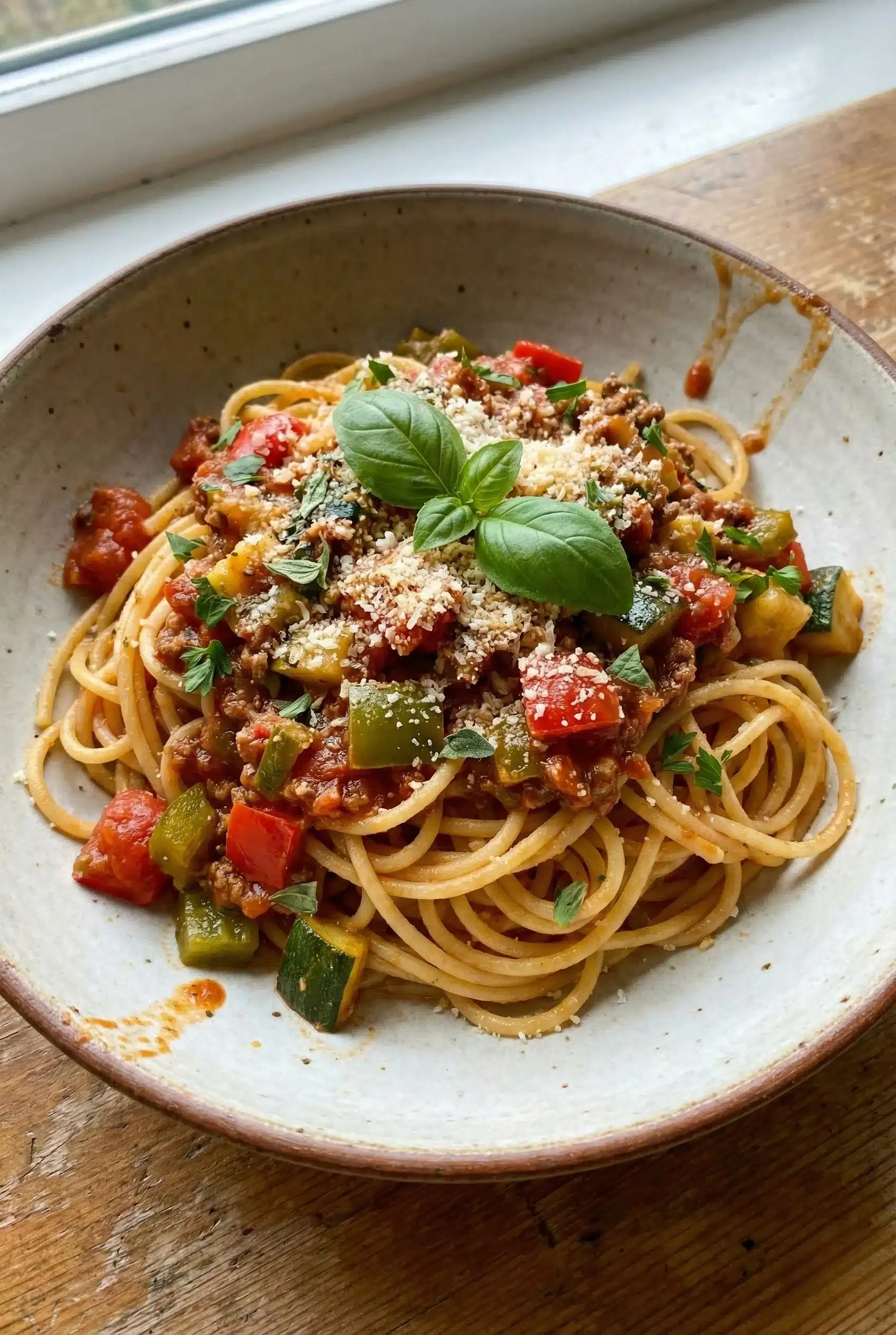 Discover the rich flavors of Veggie Bolognese Pasta Delight, featuring fresh tomatoes, hearty mushrooms, and savory herbs for a comforting meal.