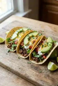 - Assemble Tacos: Place a generous amount of beef onto each tortilla. Top with fresh cilantro, chopped onion, and a squeeze of lime juice.
